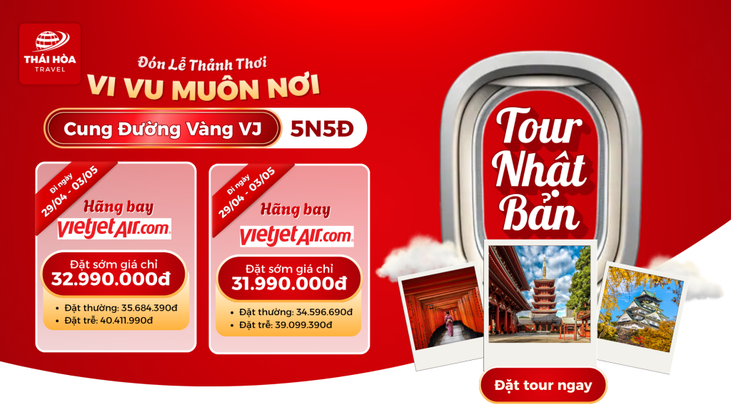 Tour Nhật Bản 5N5Đ của Thái Hòa Travel mở ra hành trình khám phá trọn vẹn cung đường vàng: Osaka- Kyoto – Fusi – Tokyo – Narita, đưa du khách chiêm ngưỡng hoa anh đào rực rỡ và thưởng thức tinh hoa ẩm thực Nhật Bản.