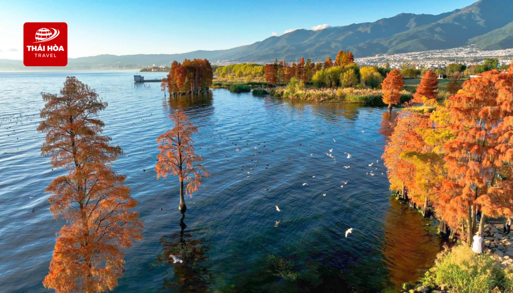 - Hành lang Nhĩ Hải: Còn gọi là hành lang sinh thái Erhai, là điểm dạo chơi nổi tiếng tại Đại Lý với mặt hồ trong xanh, bãi cỏ trải dài, bầu trời cao rộng và những cánh hải âu tung bay, tạo nên khung cảnh dịu dàng, trong trẻo như một bức tranh mùa xuân.