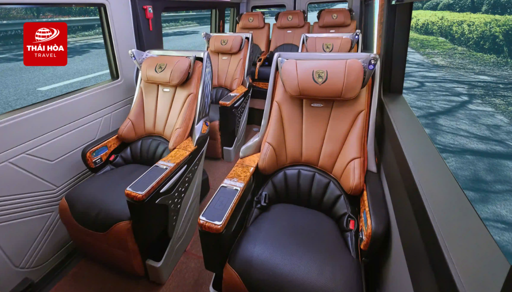• Ghế ngồi: Thiết kế tiêu chuẩn thương gia, sử dụng chất liệu da cao cấp mang lại cảm giác êm ái khi ngồi. Mỗi ghế đều có khả năng ngả sâu cùng chế độ massage giúp hành khách nghỉ ngơi thoải mái như đang nằm trên một chiếc giường thu nhỏ. Từng vị trí ngồi đều được bố trí tiện nghi cá nhân đầy đủ như bệ tỳ tay, khay để ly, ngăn đựng điện thoại.