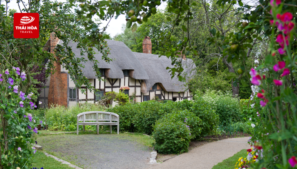 - Nhà tranh Anne Hathaway: Một trong những biểu tượng lãng mạn nhất nước Anh. Ngôi nhà mái tranh cổ kính có lịch sử hơn 500 năm này từng là nơi ở thời thiếu nữ của Anne Hathaway – vợ của William Shakespeare. Quý khách sẽ bị mê hoặc bởi kiến trúc khung gỗ mộc mạc, những khu vườn hoa rực rỡ sắc màu và không gian nội thất nguyên bản, tái hiện sống động cuộc sống nông thôn Anh thế kỷ 16.