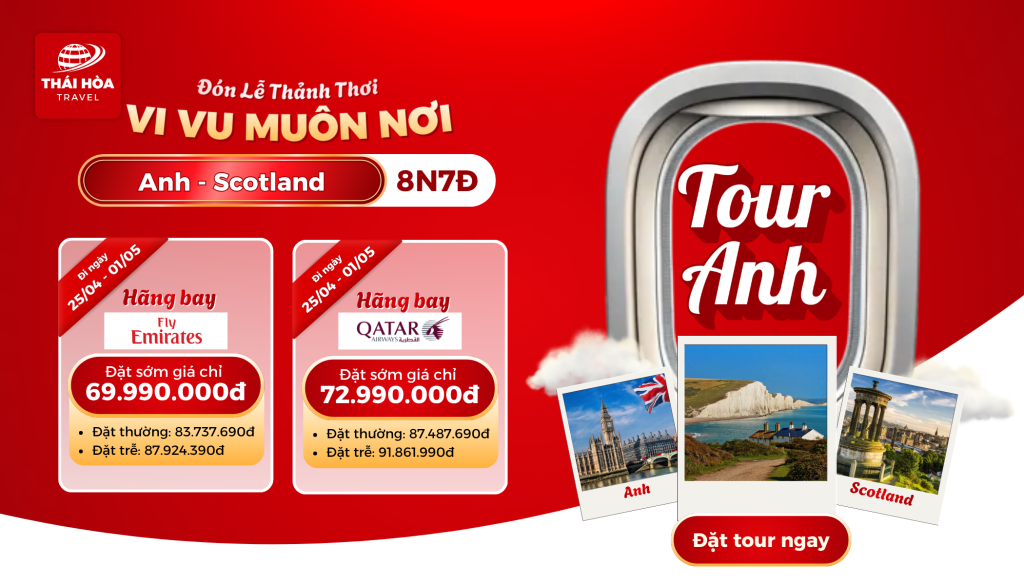 Tour Anh – Scotland 8N7Đ sẽ đưa Quý khách khám phá những dấu ấn lịch sử, văn hóa và kiến trúc độc đáo của Anh. Đồng thời chiêm ngưỡng vẻ đẹp hùng vĩ, cổ kính và đầy mê hoặc của Scotland.