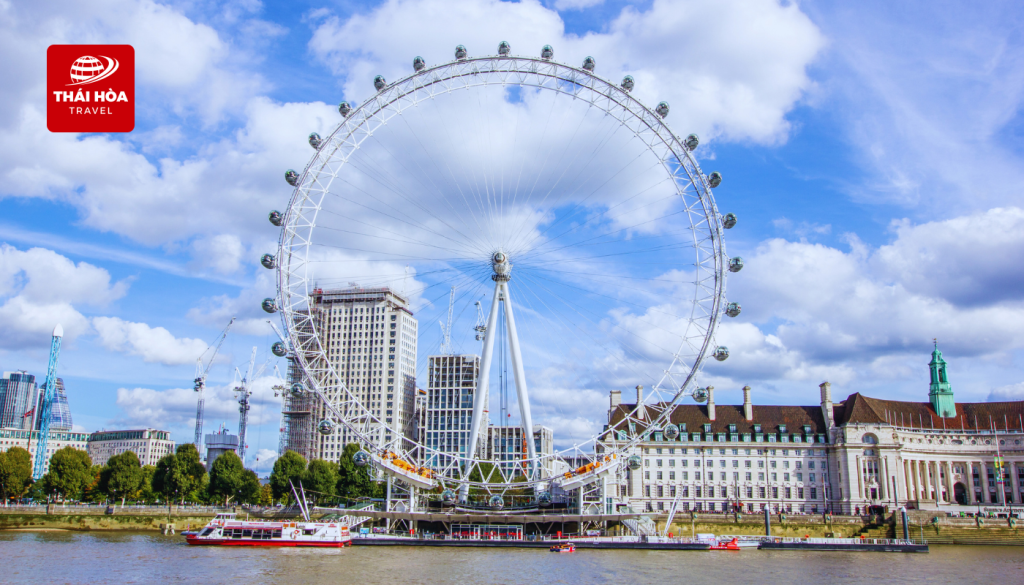 - Vòng quay London Eye: Vòng quay cao 135m, từng giữ kỷ lục lớn nhất thế giới. Từ cabin kính, du khách có thể phóng tầm mắt xa hàng chục km và chiêm ngưỡng toàn cảnh sông Thames cùng Cung điện Westminster.