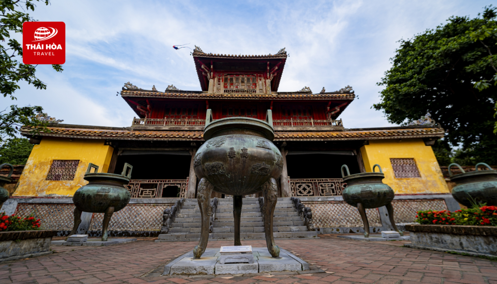 - Thế Miếu & Cửu Đỉnh: Là nơi thờ phụng các vị vua triều Nguyễn, phía trước sân đặt 9 chiếc đỉnh đồng khổng lồ (Cửu Đỉnh) đúc dưới triều vua Minh Mạng, biểu tượng cho sự trường tồn của quốc gia.