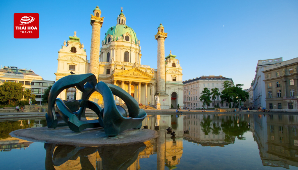 - Nhà thờ St. Charles (Karlskirche): Một trong những công trình tiêu biểu của kiến trúc Baroque tại Vienna, Áo. Nằm ở phía Nam quảng trường Karlsplatz, nhà thờ gây ấn tượng với mái vòm lớn màu xanh ngọc cùng hai cột trụ quy mô, lấy cảm hứng từ cột Trajan nổi tiếng ở Rome.