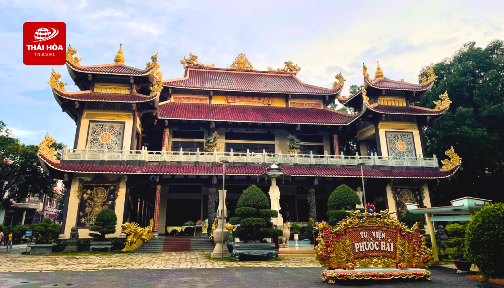 - Chùa Phước Hải (Chùa Bún Riêu): Ngôi chùa mang nét kiến trúc truyền thống với mái ngói cong uốn mềm mại, bên trong bài trí nhiều pho tượng Phật tinh xảo. Quý khách làm lễ dâng hương cầu bình an, thưởng thức bún riêu chay miễn phí – Nét đặc trưng độc đáo của ngôi chùa này.