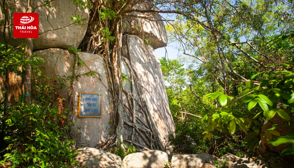 - Dinh Cô: Nơi du khách thường cầu bình an, may mắn trong cuộc sống. Công trình được xây dựng khang trang với mái ngói đỏ rực, các cột trụ chạm trổ rồng phượng tinh xảo. Từ cổng, du khách đi lên bậc tam cấp dẫn đến chính điện, nơi có thể phóng tầm mắt ngắm toàn cảnh biển. Bên trong chính điện, bài vị của Cô được thờ trang trọng, xung quanh là các vị thần linh và những tiền hiền có công với vùng đất này.