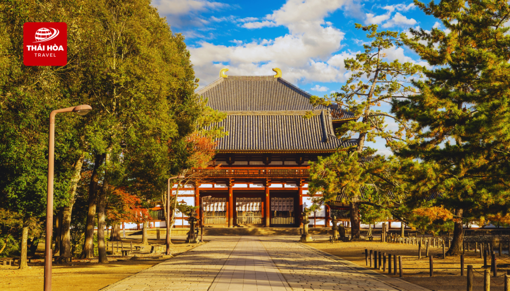 - Chùa Todaiji: Một trong những ngôi chùa nổi tiếng nhất Nhật Bản, biểu tượng của thành phố Nara, nơi đặt pho tượng Phật Tỳ Lô Giá Na bằng đồng đen nặng khoảng 500 tấn. Trước khi đặt chân vào chính điện, quý khách sẽ đi qua cánh cổng gỗ Nandaimon. Ngay tại đây, hai pho tượng thần hộ pháp Nio cao hơn 8 mét đứng uy nghi hai bên với ánh mắt dữ dội.