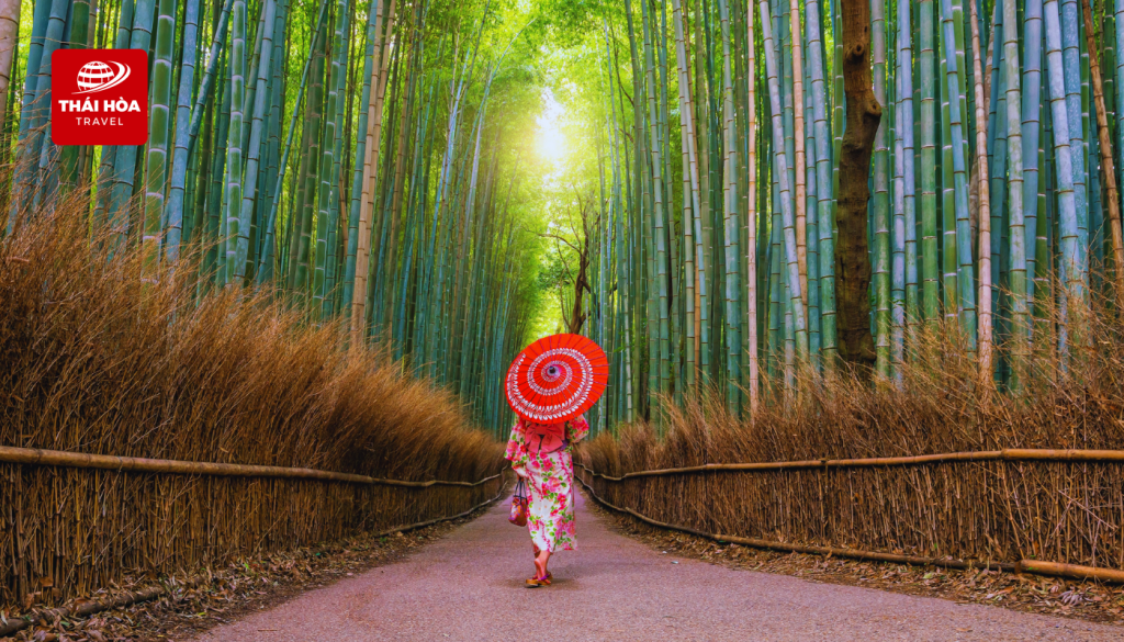 - Rừng tre Arashiyama: Khu rừng tre nổi tiếng với khung cảnh thanh bình, mang giá trị văn hóa sâu sắc, từng được CNN bình chọn là 1 trong 100 con đường đẹp nhất thế giới.