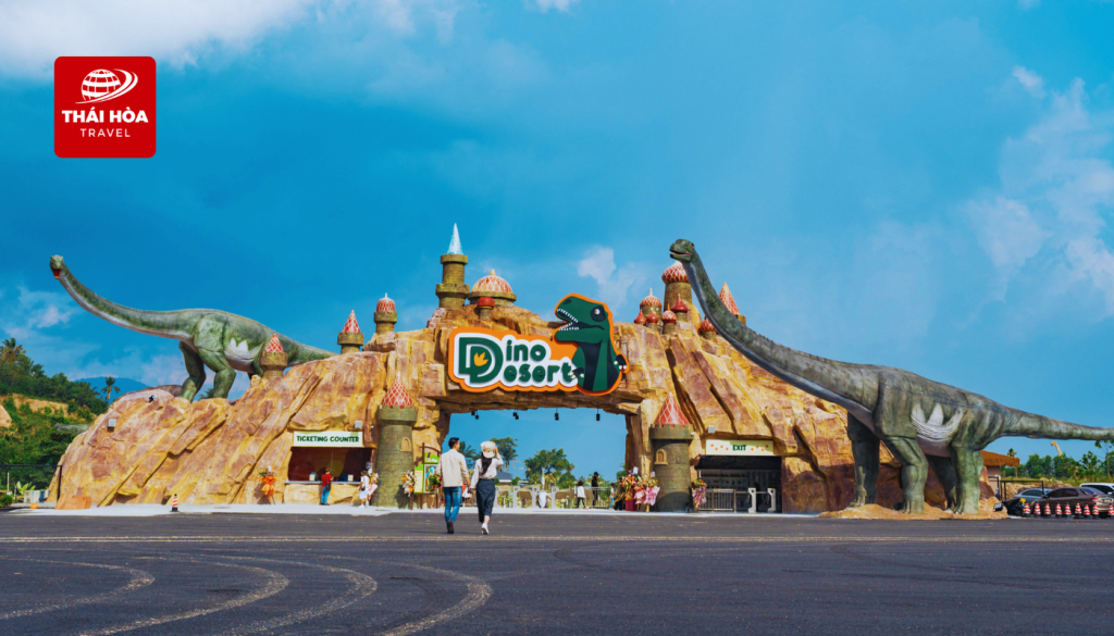 - Dino Park: Công viên chủ đề khủng long tái hiện sinh động thế giới tiền sử, mang đến trải nghiệm như “xuyên không” về hàng triệu năm trước. Tại đây, quý khách sẽ được chiêm ngưỡng những mô hình khủng long khổng lồ có khả năng chuyển động linh hoạt, kết hợp hiệu ứng âm thanh – ánh sáng chân thực. Điểm nhấn là hành trình chinh phục đồi Vòng Tròn Kỳ Quan, nơi tọa lạc Con Tàu Kỳ Quan huyền thoại, từ đây bạn có thể phóng tầm mắt ngắm trọn khung cảnh biển trời NovaWorld Phan Thiết từ trên cao (Giá tham khảo: 120.000đ/người).
