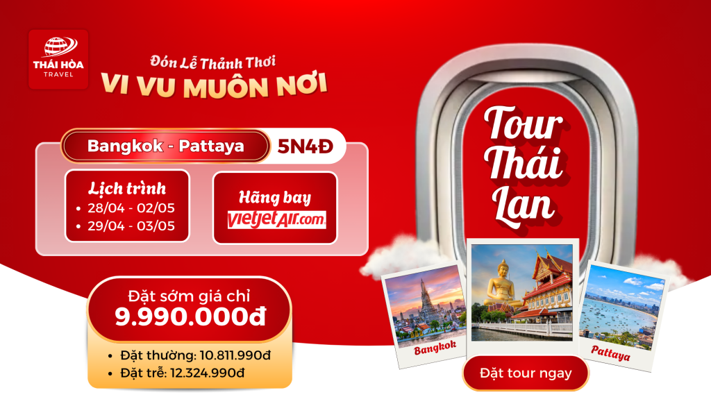 Tour Thái Lan 5N4Đ của Thái Hòa Travel sẽ đưa bạn dạo quanh Bangkok nhộn nhịp, vui chơi Pattaya sôi động, kết hợp tham quan, mua sắm và trải nghiệm văn hóa bản địa đầy cuốn hút.