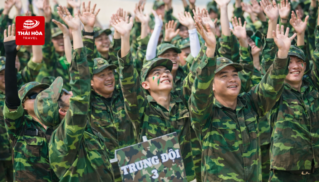 • Hô khẩu hiệu đội: Mỗi tiểu đội cùng đồng thanh hô to khẩu hiệu để thể hiện tinh thần và sức mạnh tập thể.